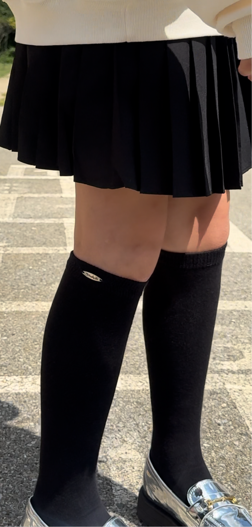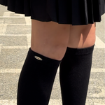 The Tippy Top Socks are a wardrobe staple designed to elevate everyday ensembles. With a sleek knee-high fit and smooth, comfortable feel, these socks pair effortlessly with skirts, dresses, or tailored shorts.